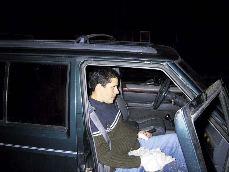 Here we are dropping off the Spawn of Satan. This is the first time I get to see how well he missed the inside of my car, obviously a rookie. | ||||||||||||