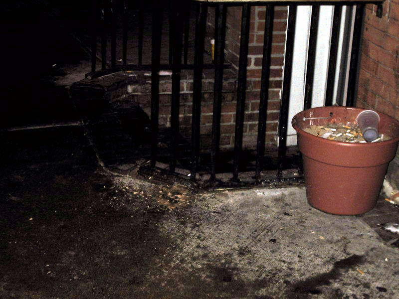 At this point the bouncer came out again with some water to wash the memories. With an angry voice he said "Take a picture of this!", I replied "already did." Then the angry man lectured us on puking etiquette. Not getting the respect that he thinks he deserved he got angrier and with the pointing of his finger said "This is not funny. I will remember you two." Now that's funny stuff. Just as a side note, this is the same place that yelled at me for drinking out the pitcher. The bartender said "Hey buddy, we have class here." And handed me a glass. This is a college bar where people throw peanut shells on the floor. |
